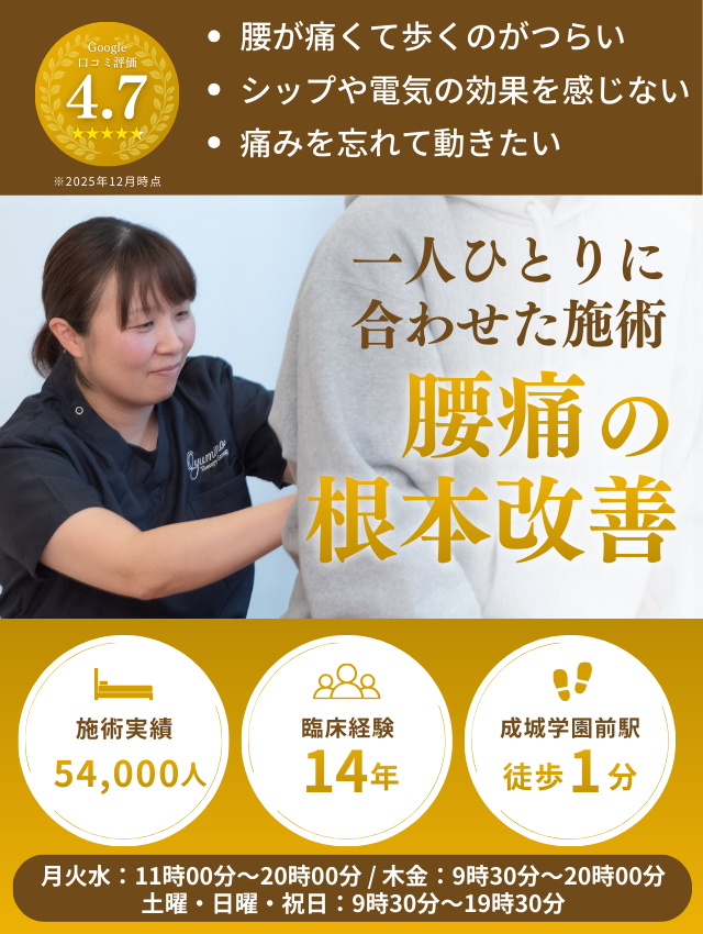 痛みの原因となっている部位に対しての施術をしないと、再発してしまいます。