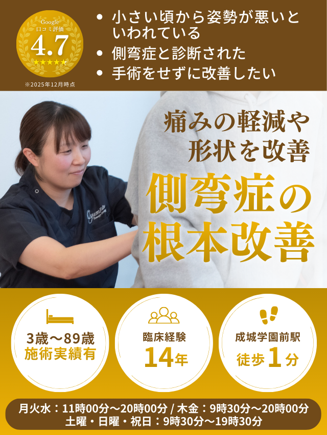 当院には「側弯症」の患者様が多数来院されています。